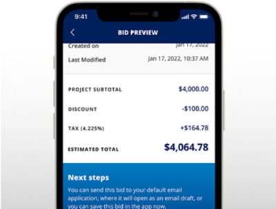 Customize your bids with the Pro+ app. Our handy tool helps you calculate pricing on a bid-to-bid basis, charge bids based off of units like square feet or anticipated time, and add discounts or calculate tax.